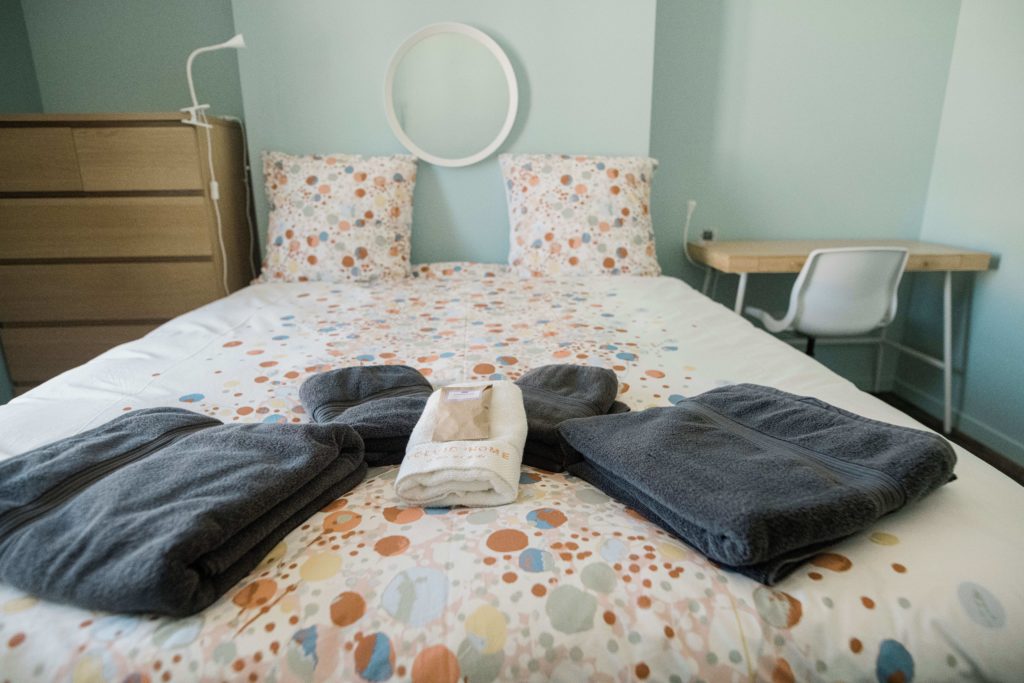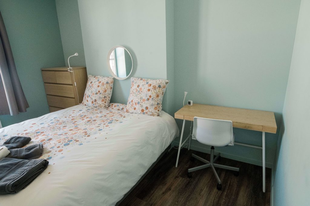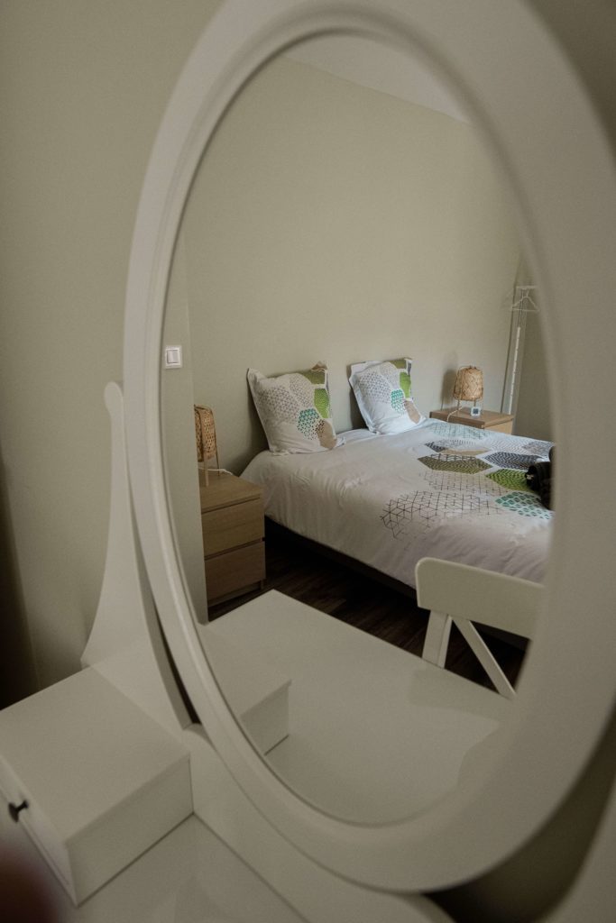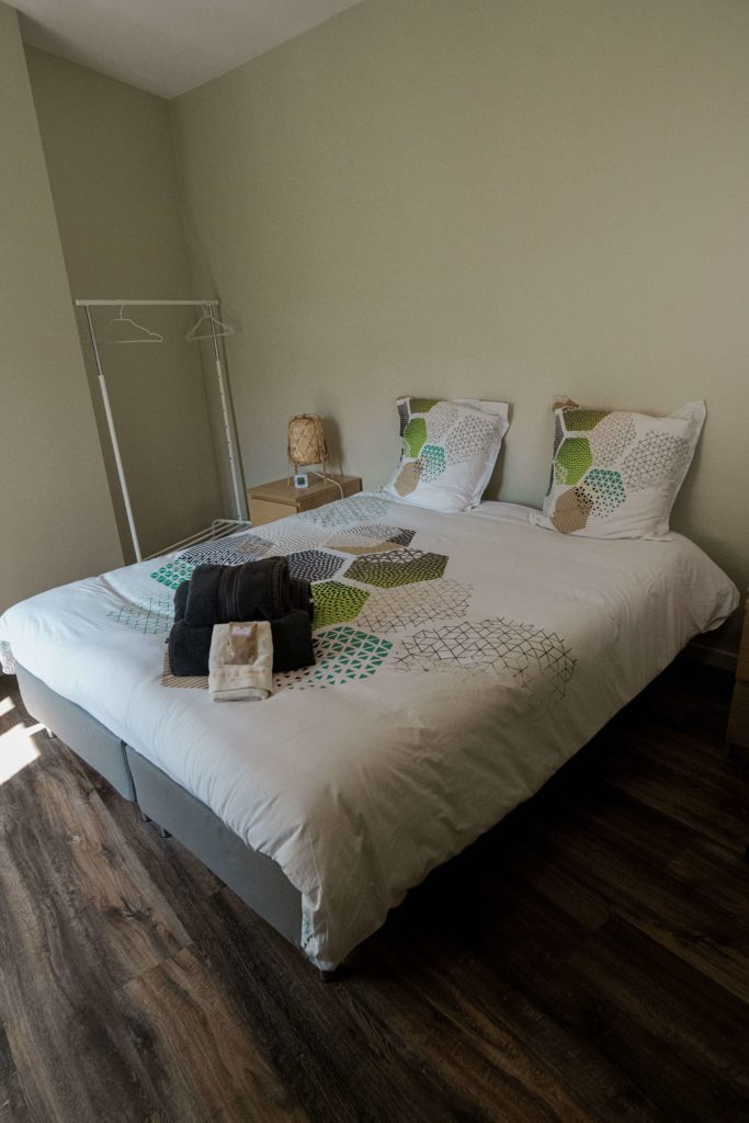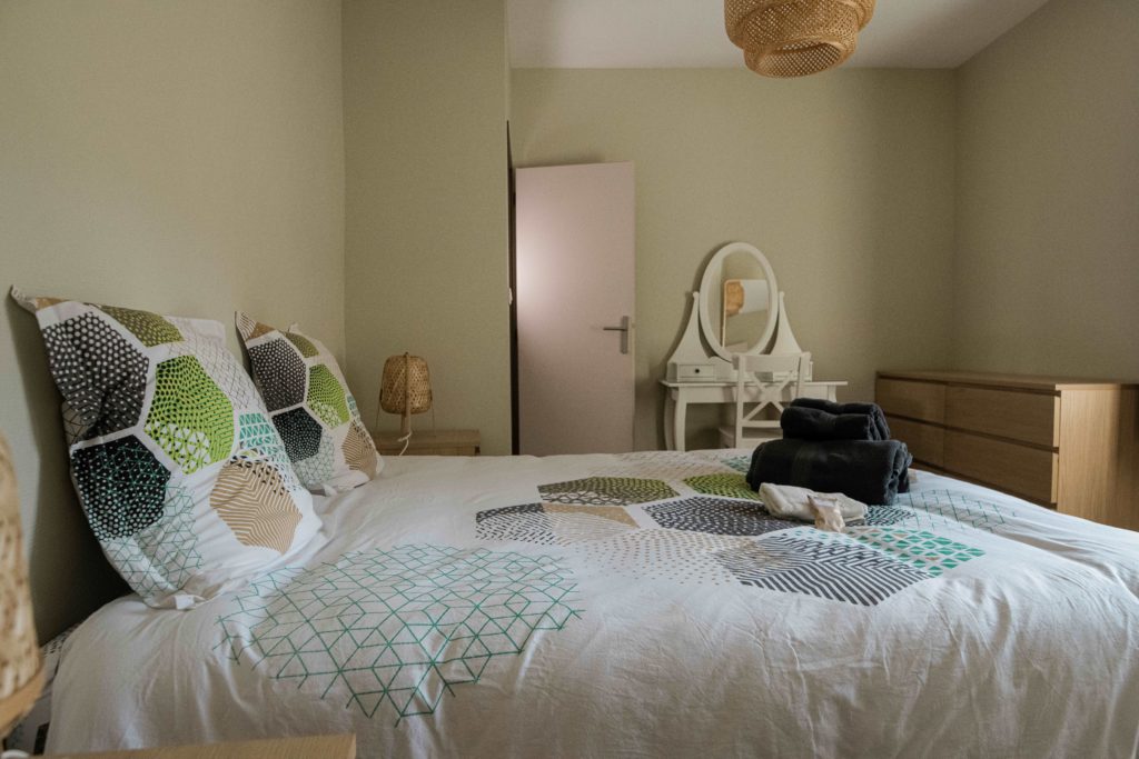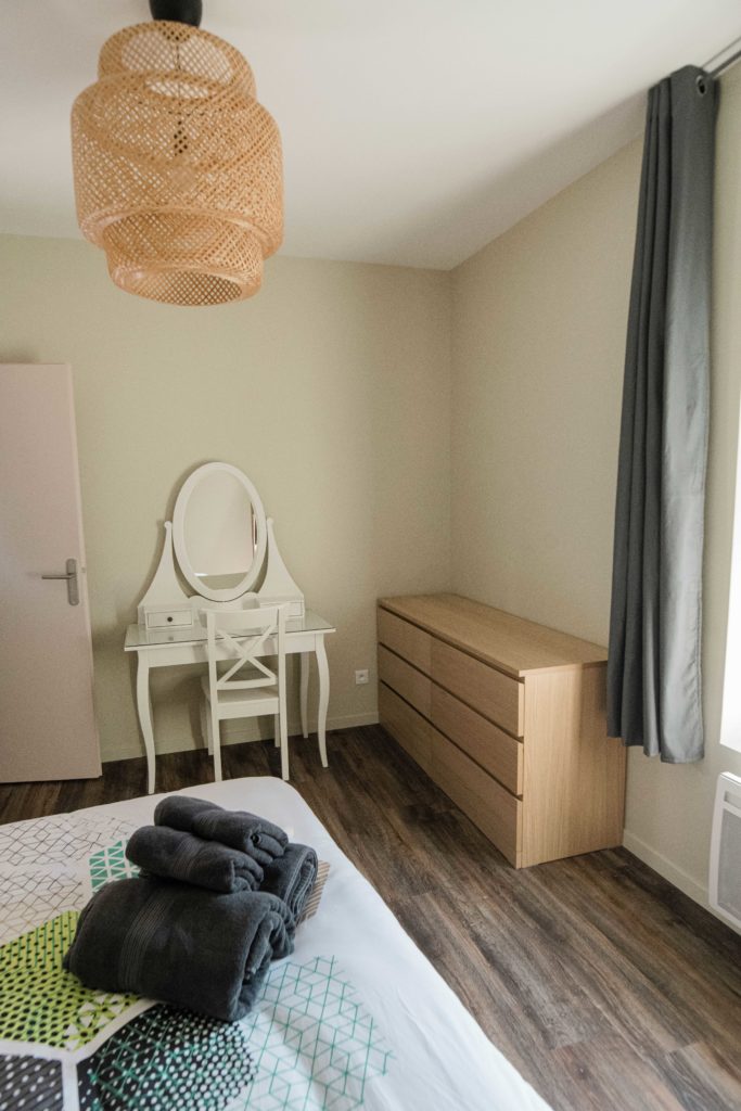 La 2ème chambre peut accueillir un couple dans 1 lit de 160 cm ou 2 personnes dans 2 lits simples de 80cm. Il y a également un bureau et un meuble de rangements.